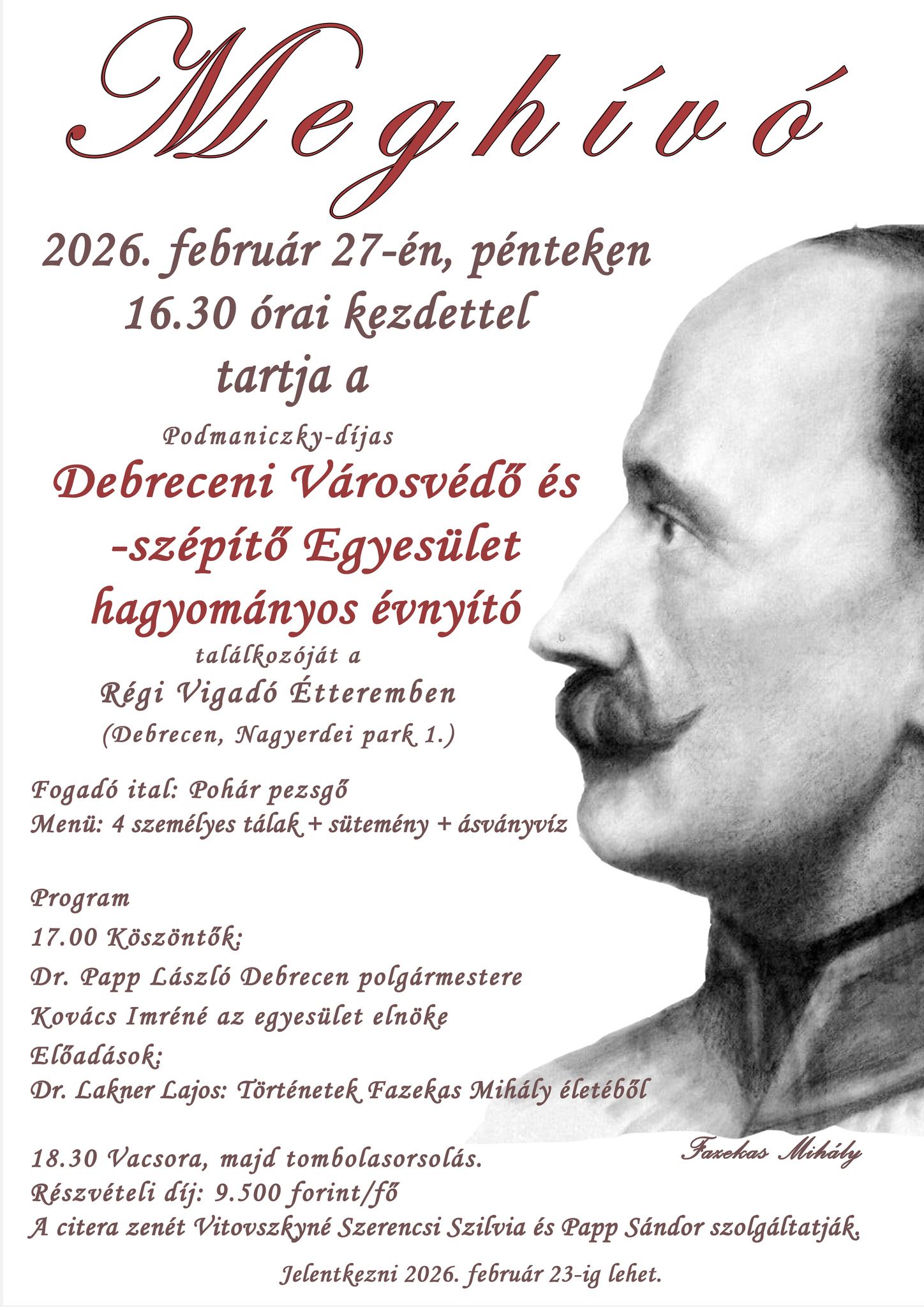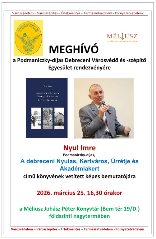 Szeretettel hívjuk a Podmaniczky-díjas Debreceni Városvédő és -szépítő Egyesület rendezvényére: