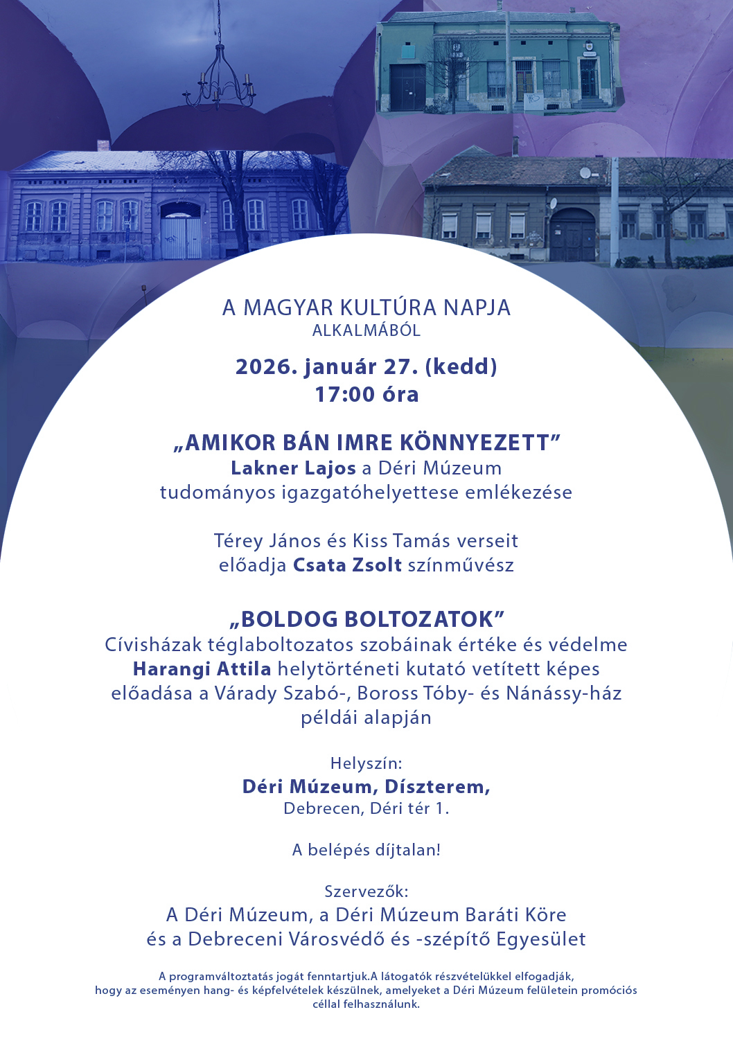 Helyszín: Déri Múzeum, Díszterem (Debrecen, Déri tér 1.)